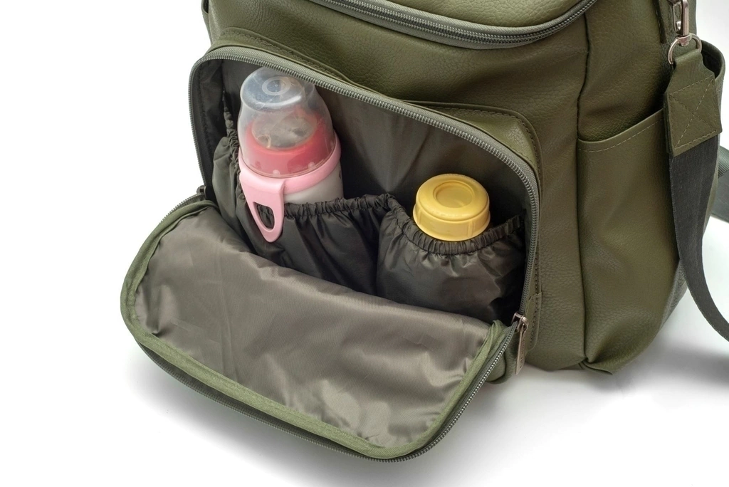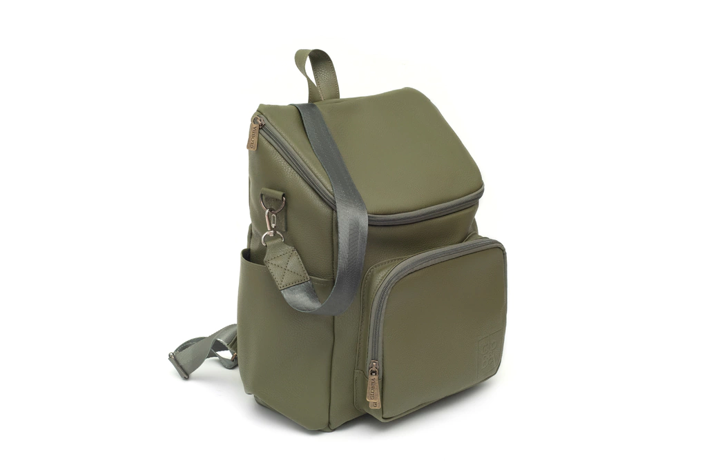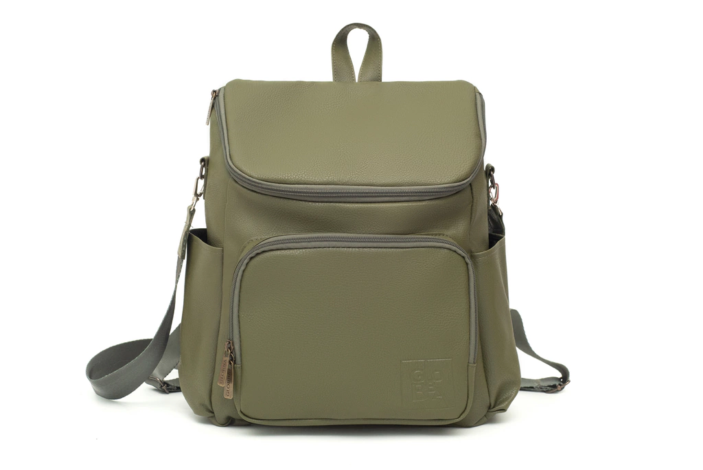 Mochila Maternal Bond Verde confeccionada en cuero ecológico de primera calidad.