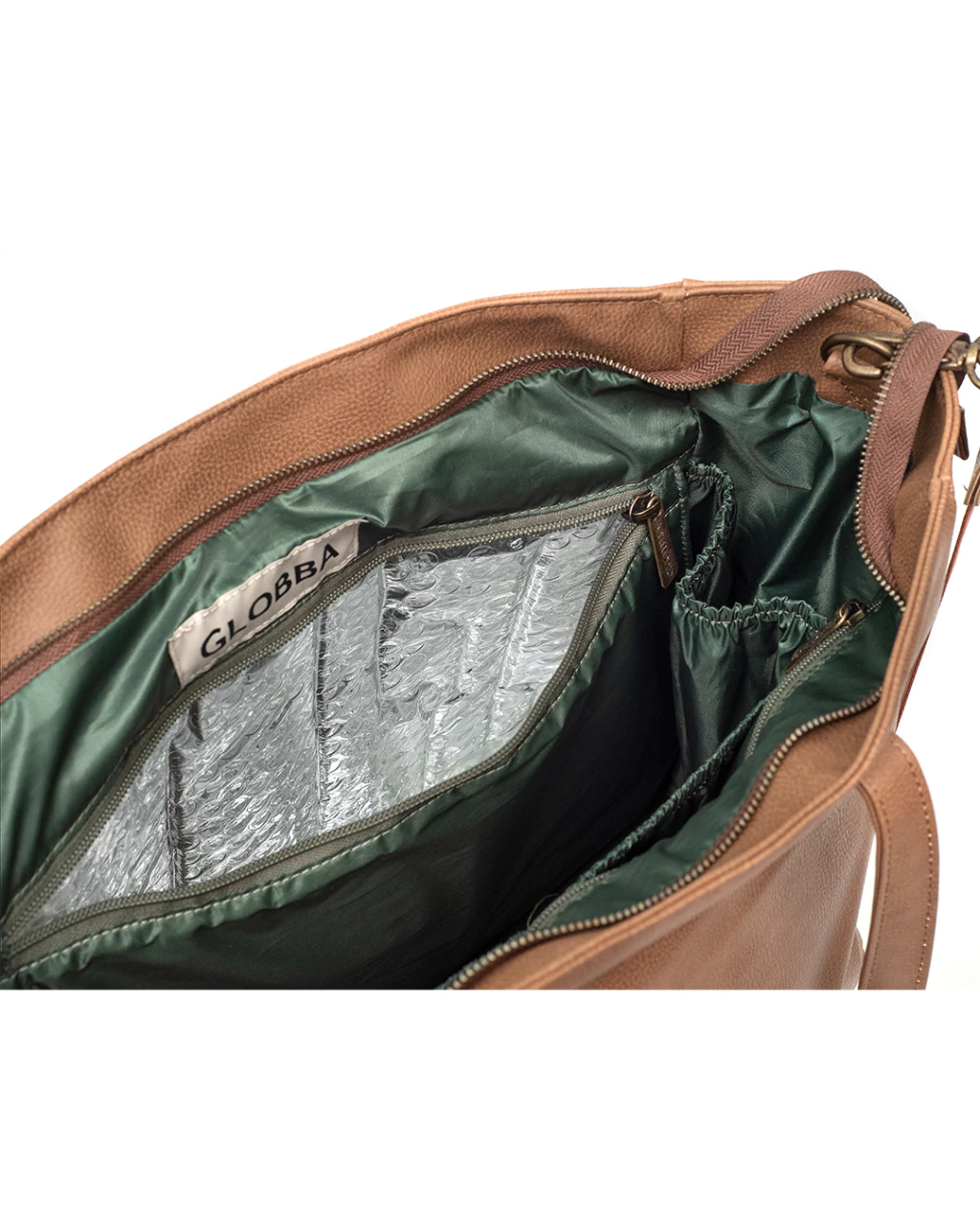 Segundo bolsillo con cierre interno térmico amplio para mamaderas y tuppers con comida.